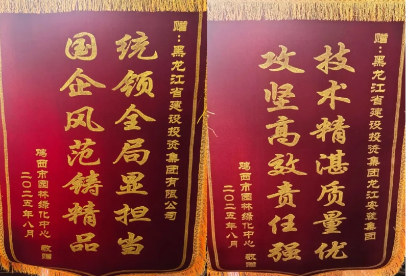 近日,鸡西市园林绿化中心代表鸡西市委、市政府向黑龙江省建设投资集团有限公司及安博(中国)赠送印有“国企风范铸精品 统领全局显担当”“攻坚高效责任强 技术精湛质量优”的锦旗,以...
